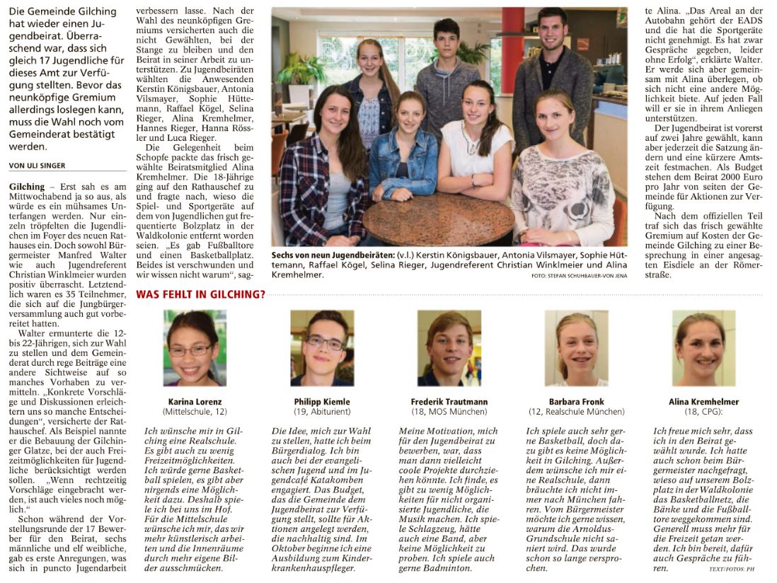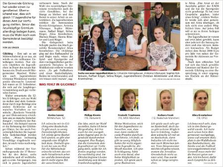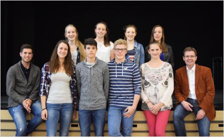 Antonia Vilsmayer, Alina Kremhelmer, Sophie Hüttemann, Raffael Kögel, Kerstin Königbauer, Hannes Wagner, Hanna Rößler, Luca Rieger und Selina Rieger. Das Gremium ist für zwei Jahre im Amt. Zur Wahl gratulieren Jugendreferent Christian Winklmeier (links) und Bürgermeister Manfred Walter (rechts)