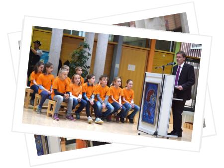 Es war eine durchwegs fröhliche Stimmung. Stellvertretender Landrat Tim Weidner erinnerte sich an seine eigene Schulzeit, Bürgermeister Manfred Walter präsentierte eine Glückskastanie und Schulleiterin Karin Zauchner räumte ein, sich während der zweijährigen Bauzeit als Lieferantin von Leberkässemmeln für die Bauarbeiter bewährt zu haben. Die oft störenden Bauarbeiten wiederum fassten die Buben und Mädchen der vierten Klassen in einem rhythmischen Anbau-Song zusammen. „Es ist alles wunderschön geworden“, schwärmte die Mama von Isabel Fischer. Die Schülerin der 4 d durfte gestern den Festakt mit einem Klaviersolo eröffnen. Die Festrede hielt Zauchner. Sie erinnerte an die Eröffnung der Grundschule Süd, wie sie ursprünglich hieß, im Jahr 2005. „Sehr schnell aber ist absehbar gewesen, dass unser neues Haus zu klein wird. Von 260 Schülern sind wir innerhalb der letzten zwölf Jahre auf 340 Schüler angewachsen“, sagte Zauchner. Ihrer Hartnäckigkeit war es zu verdanken, dass der Gemeinderat sehr schnell die Notwendigkeit erkannte und dem 4,3 Millionen teuren Projekt zustimmte. „Jetzt haben die Schüler sehr viel Platz, nicht nur Platz zum Lernen, sondern auch einen Platz, wo es sich leben lässt“, betonte der Rathauschef. Als gelungen bezeichnete Walter den Anbau, der nicht nur durch viel Holzelemente eine gemütliche Atmosphäre ausstrahlt, der sich zudem durch einen hellen Übergang optimal in den Altbau integriert. Künftig stehen den Schülern zwei Pausenhöfe zur Verfügung. Der ursprüngliche Platz, auf dem getobt und gespielt werden kann und neu der „Ruhe-Hof“, der zum Rückzug einlädt. Nur einen Steinwurf entfernt und in Sichtweite liegen die neue Montessori-Schule, das Kinderhaus, der Abenteuerspielplatz und die Kletterhalle. Ein Erziehungs- und Bildungs-Campus, der viele Möglichkeiten offenhält. „Werte, die wir heute an die junge Generation weitervermitteln, entscheiden darüber, wie die Gesellschaft von morgen aussieht“, sagte Walter. Für den kirchlichen Segen waren die Pfarrer Dorothea Bezzel (evangelisch) und Franz von Lüninck (katholisch) zuständig. Uli Singer