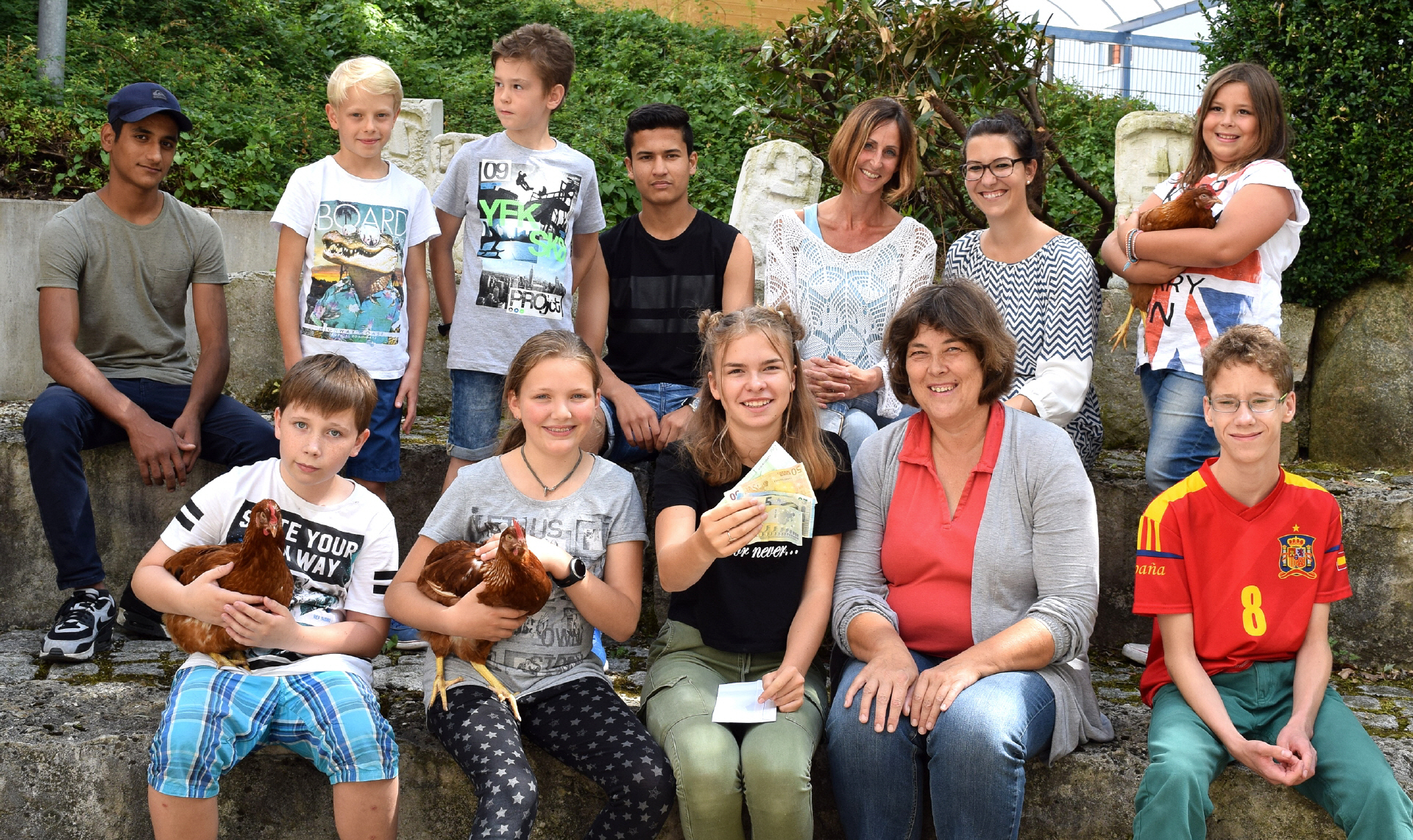Im Hof der Mittelschule in Gilching treffen sich nicht nur die Schüler zu diversen Aktionen, unter anderem haben sie Gemüsebeete angepflanzt, auch eine Schar Hühner liefern dort täglich die Frühstückseier. Da sich die Jugendlichen liebevoll um das Federvieh kümmern, sind sie allesamt sehr handsam und vertrugen sich am Donnerstag auch mit Herrn Llambi (Vierbeiner), der zu Besuch kam und die Aufmerksamkeit der Schüler rundum genoss.