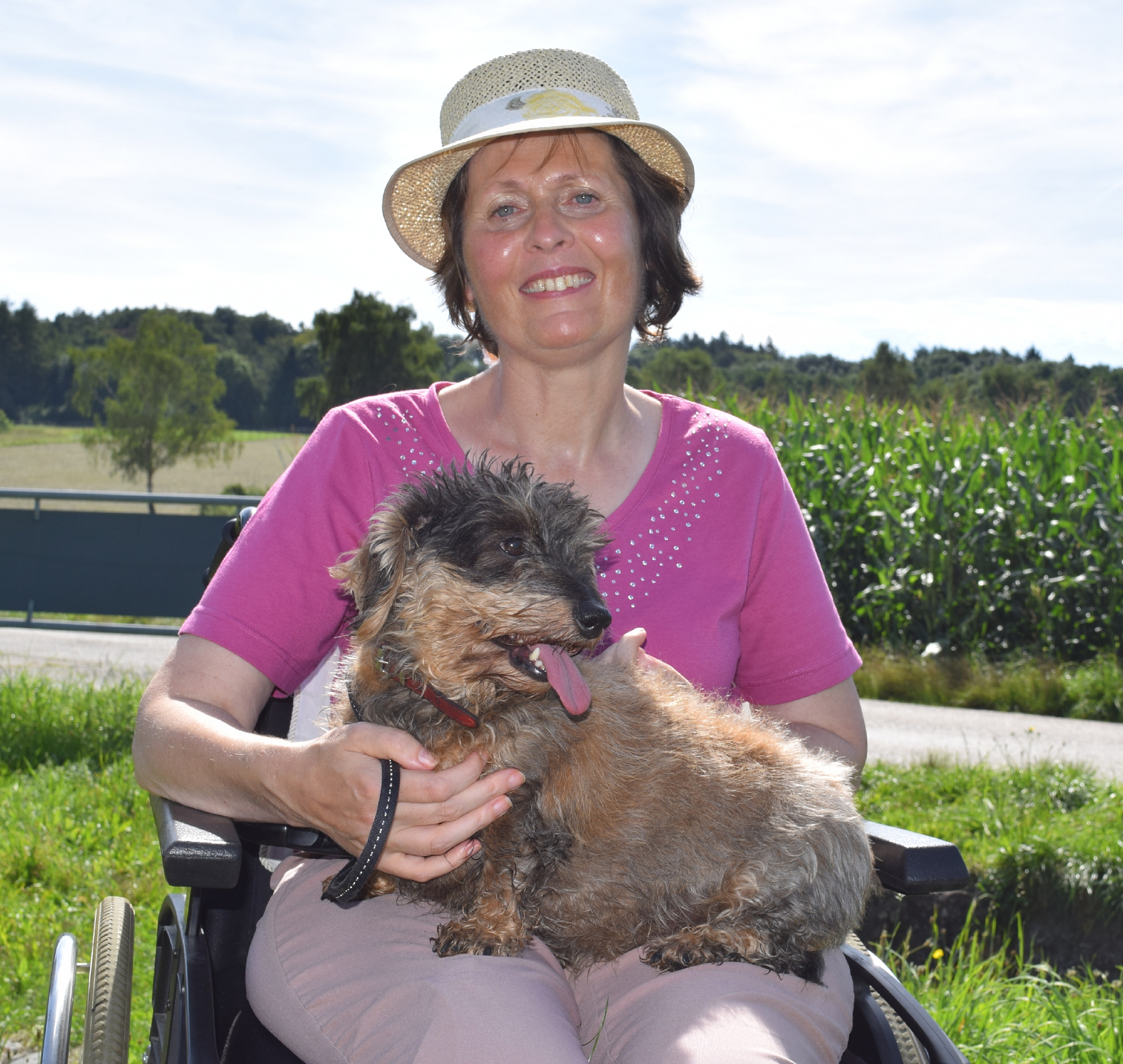 Geschieht nicht noch ein Wunder, wird Doris Sutor nie mehr laufen können. „Ich finde es, ehrlich gesagt besch…“, sagt die 56-Jährige. „Da wird man aus einem aktiven Leben herausgerissen, ohne dass man etwas dafürkann. Gerecht ist dies nicht.“ Sie war gerade einmal 32 Jahre alt, beruflich als Mitarbeiterin einer kanadischen Flugzeugfirma auf dem Sonderflughafen Oberpaffenhofen engagiert, sportlich sehr aktiv und in der Freizeit mit Leib und Seele Laienschauspielerein bei der „Guichinger Dorfbühne“, als sich MS ankündigte. Die Krankheit kam schleichend. Erstes Anzeichen von Multiple Sklerose war eine Entzündung des Sehnervs. Dem ersten Schub folgte nach einigen Jahren Pause der zweite. Von da an ging es gesundheitlich ständig bergab. „Sobald ich Stress hatte, war ich körperlich erschöpft und bekam auch immer wieder neue Schübe. Ich machte zwar weiter wie vorher, doch alles ein bisschen langsamer. Bis es gar nicht mehr ging.“ Dies war 1996. Sie kündigte ihre Arbeit, „die mir sehr viel Spaß gemacht hatte“ und musste auch das Theater spielen an den Nagel hängen. Seit 2008 ist sie ganz auf den Rollstuhl und eine Rundum-Pflegerin angewiesen, die bei den Sutors mit ihm Haus wohnt. „Ob ich mit dem Schicksal hadere? Ja, sehr. Ich war ein Leben lang aktiv und selbständig und plötzlich kann ich nicht einmal mehr alleine auf die Toilette gehen. Dies kann niemand nachempfinden, der es nicht selbst schon mal erlebt hat.“ Da auch ihre Hände keinerlei Kraft mehr haben, muss selbst die Leine ihrer geliebten Rauhaardackel-Dame Fipsi bei den täglichen Spaziergängen von der Pflegerin gehalten werden. Was ihr bleibt, sind außer den Ausflügen in die freie Natur das Lesen von Tageszeitungen, Modejournalen, historischer Romane und der Gartenzeitung. „Ich kann zwar selbst nichts mehr im Garten machen, aber anschaffen, das kann ich schon noch.“