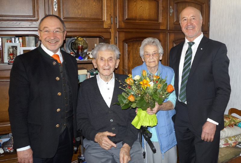 Katharina war 14 und Peter 16 als der Blitz einschlug. „Sie hat mir von Anfang an gut gefallen“, erzählt Peter Weissmann. Auch Katharina war einem Flirt nicht abgeneigt. Von nun an ging man gemeinsam Spazieren und auch mal Tanzen, mehr aber war nicht drin. „Wir waren immer sehr brav, da hat es nichts gegeben. Das war auch gar nicht möglich, denn die Mama war sehr streng und sie war immer mit dabei“, erinnert sich Peter. Zuhause war das Paar im jugoslawischen Feketisch. Als so genannte Donauschwaben wuchsen sie dreisprachig auf, jugoslawisch, ungarisch und als Muttersprache Deutsch. Geheiratet wurde standesamtlich am 27. Januar 1942, vier Jahre nach dem Kennenlernen. Die kirchliche Trauung folgte am 15. Februar. Das Glück dauerte nur wenige Monate. Noch im gleichen Jahr kam Katharina Weissmann in ein russisches Gefangenenlager, Peter Weissmann fiel Titos Partisanen in die Arme und landete in einem Lager in Belgrad. „Es kann sich kein Mensch vorstellen, was wir da an Gewalt und Demütigungen erdulden mussten.“ Erlebnisse, die den 95-Jährigen nie mehr losgelassen haben. Wenn er erzählt, muss er Pausen einlegen, zu sehr gehen ihm die Schreckensszenarien auch heute noch nah. Irgendwie gelang es ihm, 1947 zu flüchten, die 50-Jährige Mama Kristina aus einem anderen Gefangenenlager in Jugoslawien rauszuholen und sich zu Fuß über Ungarn und Salzburg auf den Weg nach Gilching zu machen. „Wir haben erfahren, wie weiß ich gar nicht mehr, dass mein Vater in Gilching ist und wollten zu ihm.“ In Berchtesgaden sollten sie noch einmal gestoppt werden. „Wir waren zwar Deutsche, hatten aber keine Papiere, weshalb uns die Behörden wieder zurück über die Grenze schicken wollten.“ Letztendlich aber standen sie am Bahnhof in Berchtesgaden und hofften, einen Zug nach München zu bekommen. „Unser Problem war nur, wir hatten kein Geld für die Fahrkarten. Da ist eine alte Frau auf uns zugekommen, hat erkannt, was uns fehlt und hat für uns die Fahrkarten gekauft.“ Ähnliches Problem gab es in München. „70 Pfennige kostete das Billett nach Gilching-Argelsried. Wir fanden auch hier jemanden, der uns das Geld lieh.“ Nachts kamen Peter Weissmann mit Mama Kristina am Bahnhof in Gilching an. „Wir wussten nur, dass der Vater bei Thosti arbeitete und im Wohncontainer der Firma untergebracht war. Deshalb gingen wir auf den Eisenbahnschienen in Richtung Flughafen, in der Hoffnung, dass dort das Thosti-Lager war. Da kam uns auf den Gleisen ein Mann entgegen, den wir nach dem Weg fragen wollten. Es war mein Vater.“ Katharina Weissmann erfuhr über das Rote Kreuz, wo Ehemann Peter nach der Flucht gelandet war. Sie kam 1949 nach Gilching. Peter bekam als Maurer ebenfalls Arbeit bei Thosti, die sich auf Straßen- und Kanalbau-Arbeiten spezialisiert hatten, nahm an Forbildungen bei und war zuletzt als Capo für rund 60 Mitarbeiter zuständig. Die Gemeinde aber stellte der Familie in der heutigen Sternstraße ein Grundstück für 25 Pfennige pro Quadratmeter zur Verfügung. „Unser Haus habe ich selbst gebaut und später auch angebaut, damit alle Platz hatten“, erzählt Peter Weissmann. Gefreut hat sich das Ehepaar, als anlässlich der Kronjuwelen-Hochzeit Landrat Karl Roth mit einem Landkreis-Fotobuch im Gepäck und Vizebürgermeister Martin Fink mit einem Geschenkkorb zu Besuch kamen. „Der Besuch hat bei dem Ehepaar mich stark beeindruckt“, betonte Roth. „Sie erzählen so lebendig aus ihrem Leben, über gute und auch schlechte Zeiten. Bei Beiden aber spürt man aber auch eine gegenseitige Herzenswärme und Zuneigung und die Bereitschaft, füreinander da zu sein.“ Uli Singer