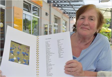 sowohl schmerzlichen auch positiven Erfahrungen beim Schreiben von Gedichten. Ihr erstes Werk, das sie in kleiner Auflage erstellt hat, trägt den Titel "Manchmal, da möchte ich heimgehen".