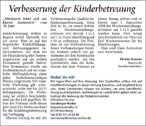 Aus Starnberger Merkur vom 18. Dezember 2008