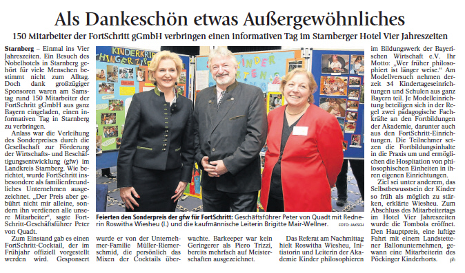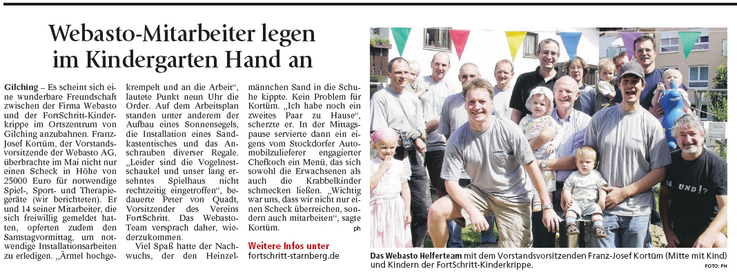 Zu den Presseartikeln: Selbstverständlich berichtet auch die Süddeutsche Zeitung viel und auch positiv über FortSchritt und die diversen Aktionen. Leider aber dürfen Artikel der SZ nur gegen Bezahlung einer, für uns zu hohen, Lizenzgebühr eingestellt werden. Deshalb, und nicht, weil wir eine Zeitung ausgrenzen wollen, finden Sie hier keine Artikel der Süddeutschen Zeitung.
