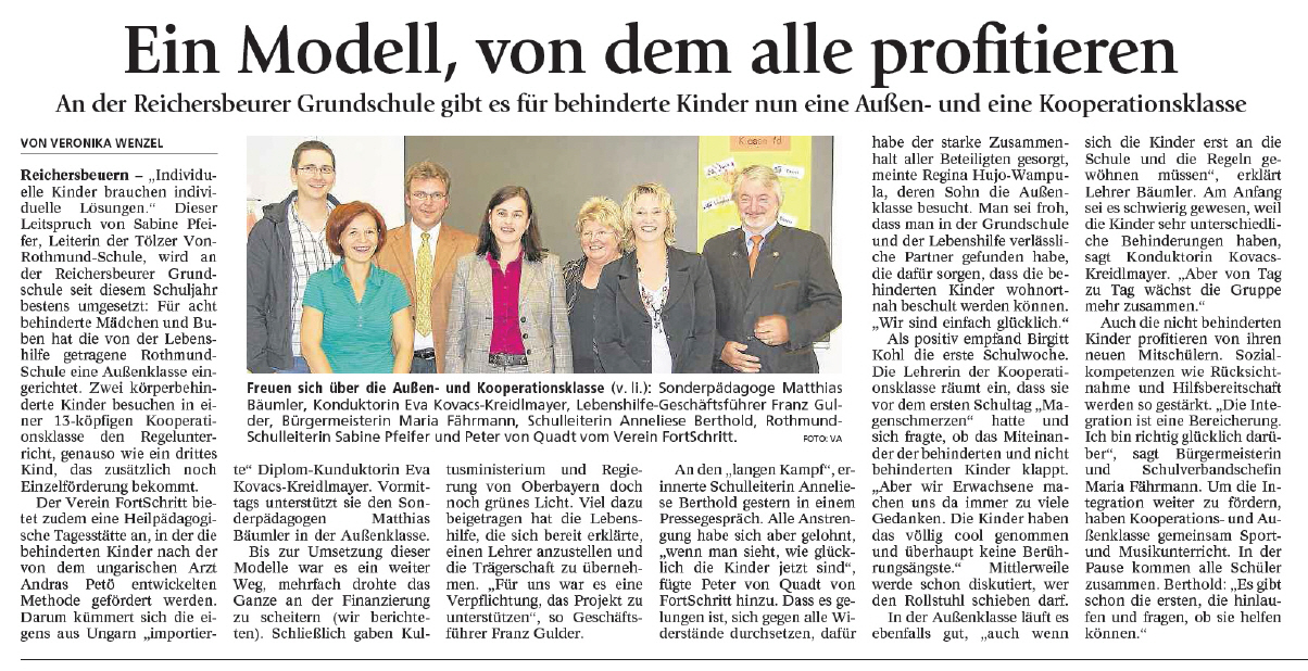 Kinder gemeinsam unterrichtet. Hier geht es zum kompletten Artikel: Rohrdorfaugust2009.pdf [118 KB]